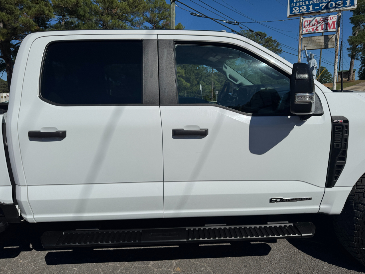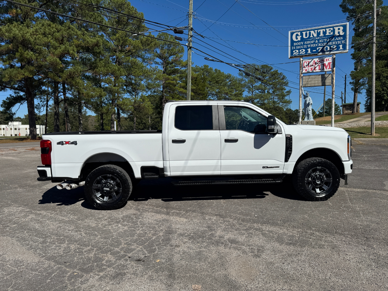 Oxford White 2023 Ford F-250SD STX 4WD 10-Speed Automatic Power Stroke 6.7L V8 DI 32V OHV Turbodiesel 4WD, ABS brakes, Compass, Electronic Stability Control, Heated door mirrors, Illuminated entry, Low tire pressure warning, Remote keyless entry, Traction control.