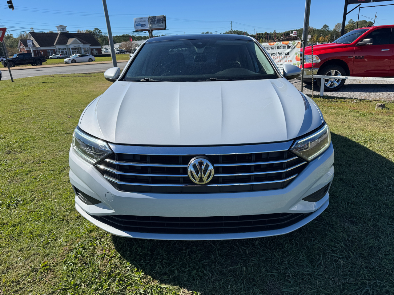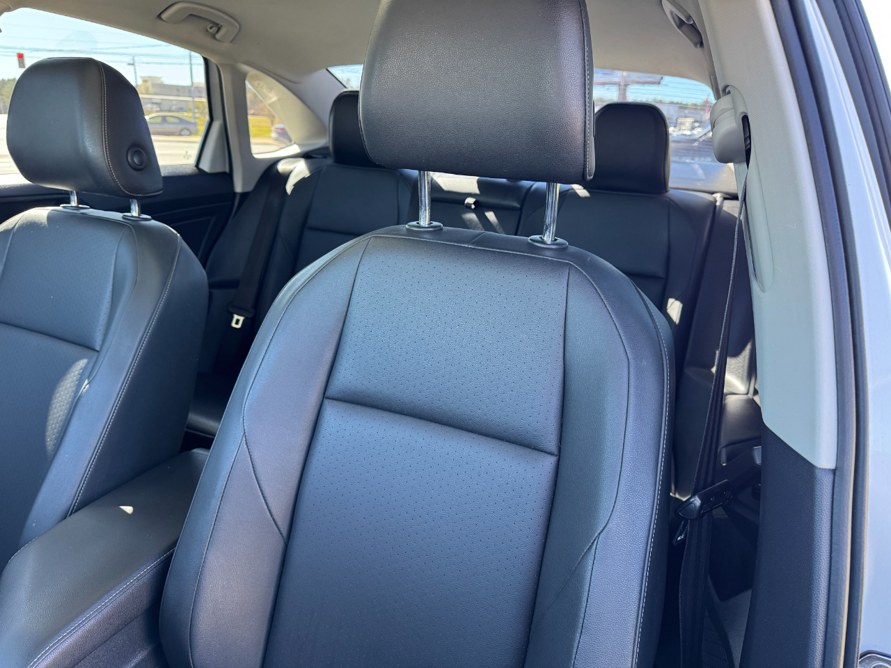 White Silver Metallic 2019 Volkswagen Jetta SEL FWD 8-Speed Automatic with Tiptronic 1.4L TSI Titan Black w/Perforated Leather Seat Trim.